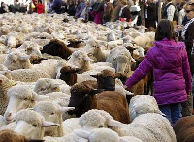 MADRID, 29 octubre 2012 (AP) — Un grupo de españoles arreó el domingo un rebaño de más de 2.000 ovejas por el centro de Madrid en defensa de antiguos derechos de pastoreo y rutas de migración y trashumancia que están amenazados por el crecimiento de la urbe y las prácticas agrícolas modernas.
